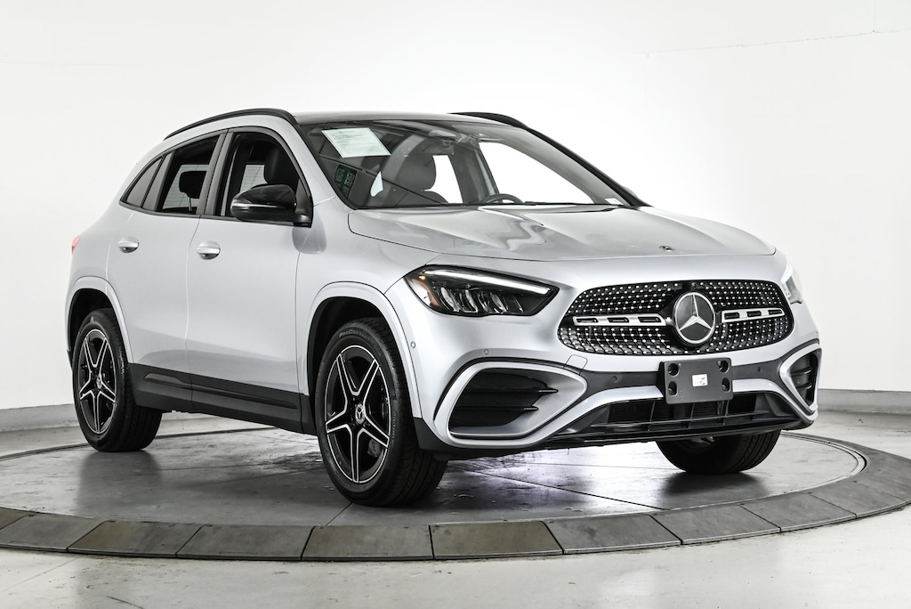 Certified 2024 GLA250W4 All Wheel Drive Cirrus Silver Metallic/Black MB-Tex/Microfiber with Red Stitching with Exclusive Package, Panorama Sunroof, Burmester(R) Surround Sound System, Winter Package, Heated Front Seats, Roof Spoiler/Body Color, LED Logo Projectors, Illuminated Star Pattern Trim, 19 AMG Twin 5-Spoke Wheels w/Black Accents & Wheel Locking Bolts