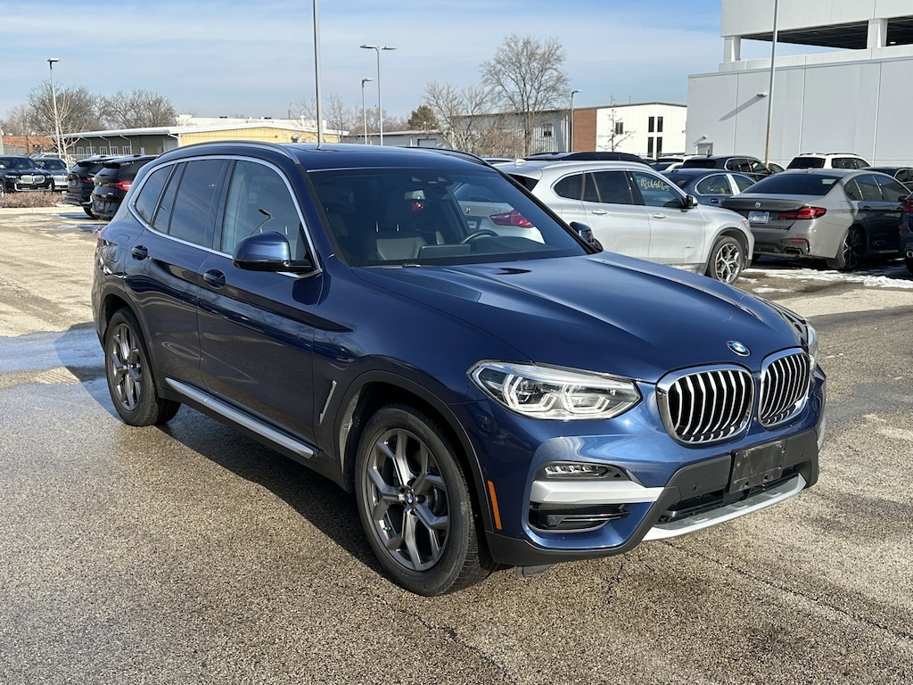 This 2020 BMW X3 30i xDrive had an original MSRP of $56,545. It is well equipped with the following options. (Loaded in Options and Rare Phytonic Blue Color!!!) X-LINE---19 Y-SPOKE WHEELS---EXECUTIVE PACKAGE---DRIVING ASSISTANCE PLUS---ACTIVE CRUISE CONTROL---DRIVING ASSISTANCE PACKAGE---ACTIVE BLINDSPOT DETECTION---LANE DEPARTURE WARNING SYSTEM---HEATED FRONT AND REAR SEATS---HEATED STEERING WHEEL---PANORAMIC MOONROOF---ADAPTIVE FULL LED LIGHTS---PARKING ASSISTANT PLUS---ACTIVE PARK DISTANCE CONTROL---REARVIEW CAMERA WITH SURROUND 3D VIEW---AUTOMATIC HIGH BEAMS---HEAD UP DISPLAY---GESTURE CONTROL---NAVIGATION---REAR MANUAL SIDE WINDOW SHADES---WIRELESS CHARGING---APPLE CARPLAY COMPATIBILITY This is a Local trade and It Completely Passed our certified AUTONATION inspection. This BMW was bought and serviced at our BMW dealership. We are also including an Industry Leading 90 Day or 4,000 Mile Warranty. We are one of the Largest BMW Dealers in the Midwest! Please check out our website for additional inventory and specials - www.LaurelBMW.com