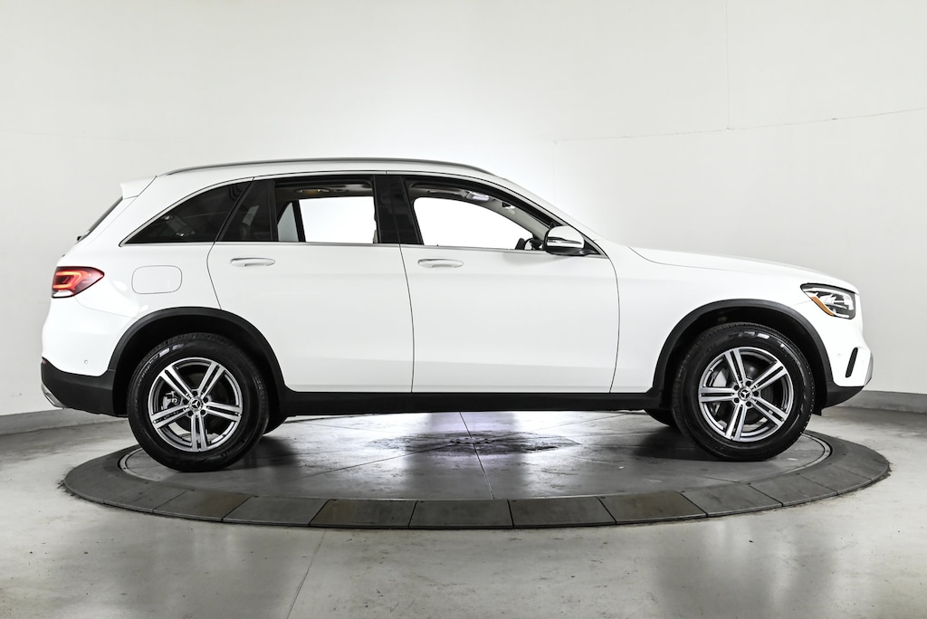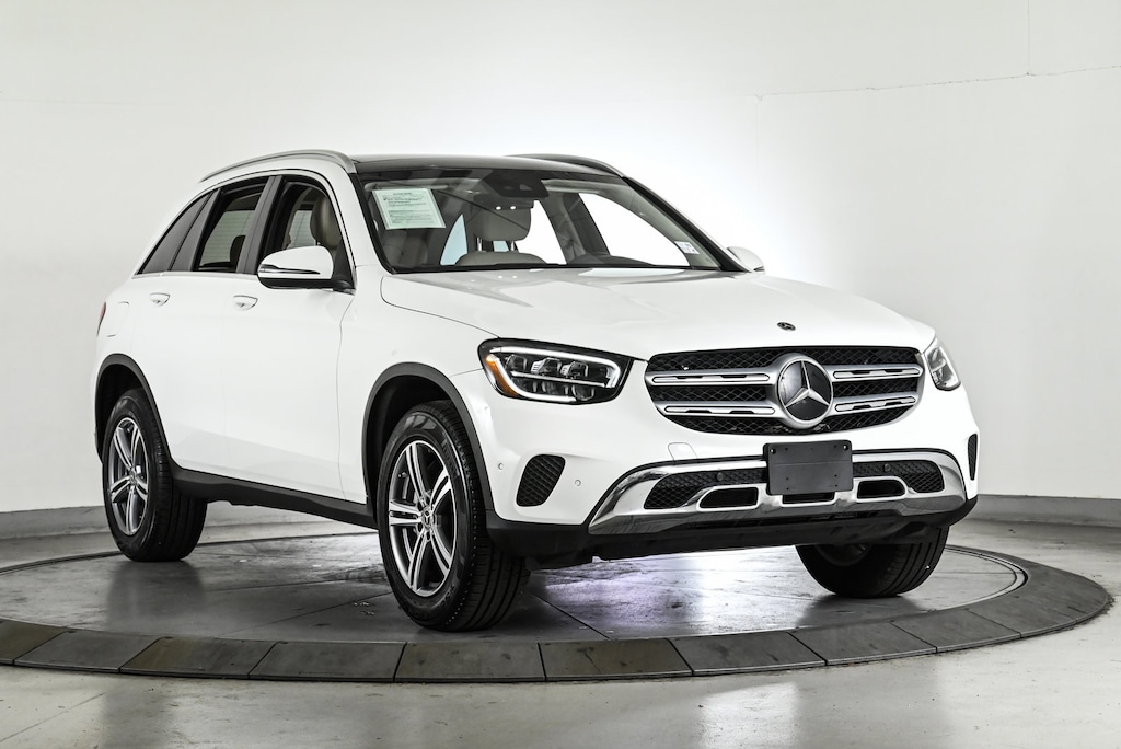 Certified 2022 GLC300W4 All Wheel Drive Polar White/Silk Beige MB-Tex with Premium Package, Lite, Panorama Sunroof, Heated Steering Wheel, 12.3 Digital Instrument Cluster, Emergency Spare Wheel, Natural Grain Walnut Wood Trim & 18 5-Spoke Wheels