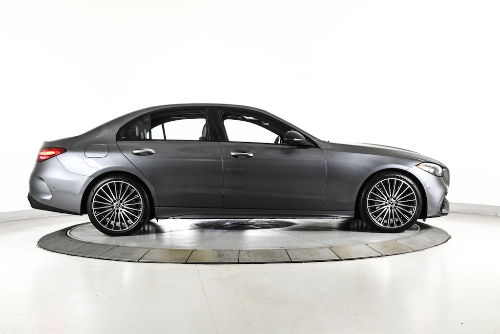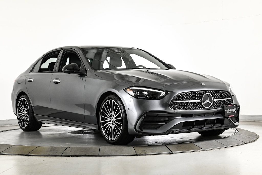 Certified 2025 X Loaner C300W4 Selenite Grey Metallic/AMG Black MB-Tex with Exclusive Line, AMG Line w/Night Package, Heated & Ventilated Front Seats, Panorama Sunroof, Heated Steering Wheel, natural Grain Black Wood w/Aluminum Lines, 19 AMG Multispoke Wheels w/Black Accents & Wheel Locking Bolts